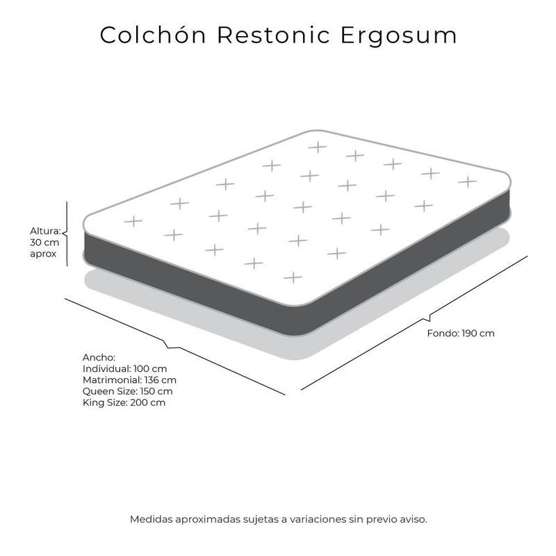 Colchones y BoxesColchonesMatrimonialColchon Matrimonial Restonic Ergosum Negro+ Almohada Royal+ Sabanas Royal RGH