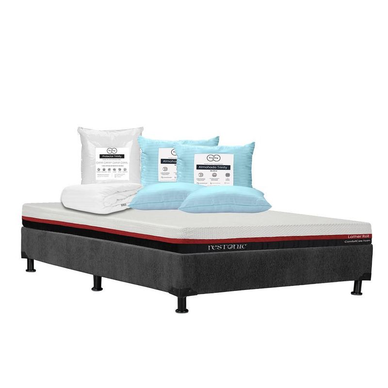 Colchones y BoxesSets de colchonesMatrimonialColchón Matrimonial Restonic Roll + Box + 2 Almohadas + Protector TRY