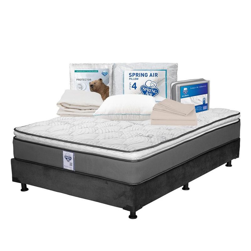 Colchón Matrimonial Spring Air Prestige + Box + Ropa de Cama TRY