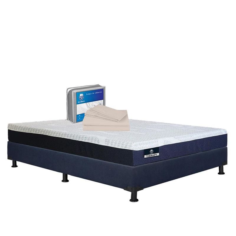 Colchón Matrimonial Therapy Azul+ Box+ Sabanas Basic TRY