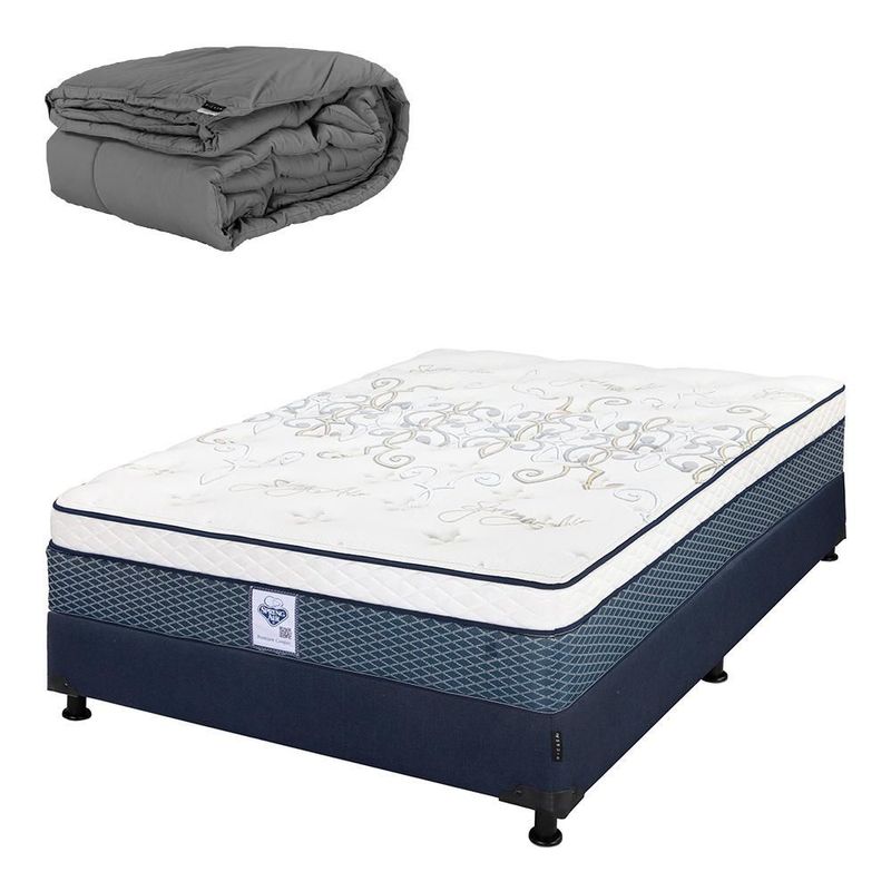 Colchón Queen Size Cantabria+ Box Azul+ Edredón Homy CDZ