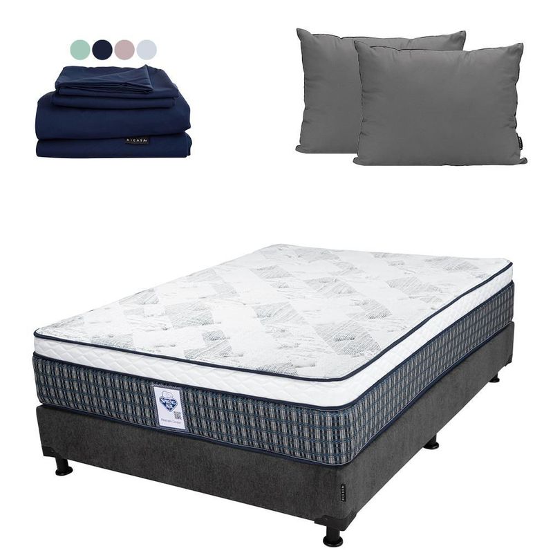Colchón Queen Size Cardona Gris Carbón+ Box+ Almohada+ Sabanas CDZ