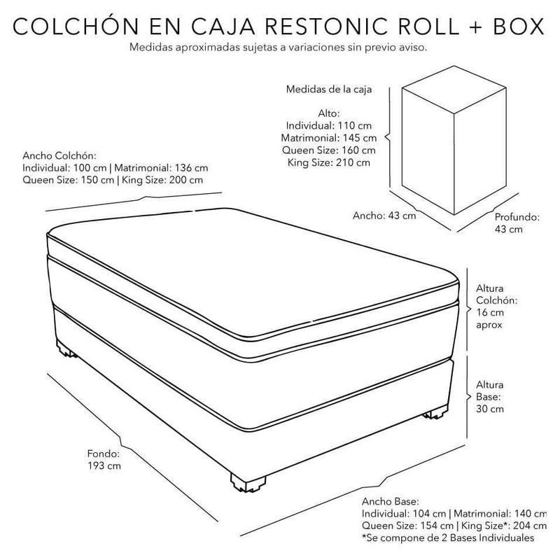 Colchón Queen Size Dicasa InaBox + Base Cama Belt Negro CZD