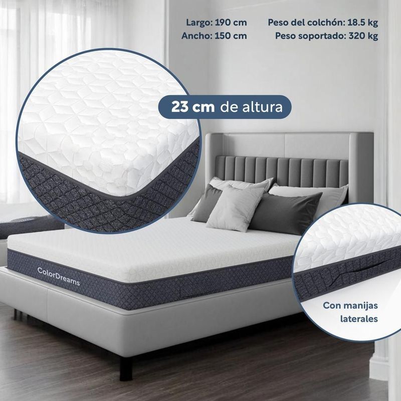Colchón queen size en caja premium 150x190x23 cm memory foam hipoalergénico colo