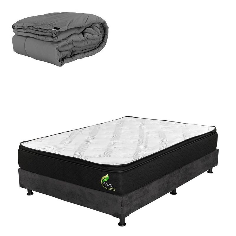 Colchón Queen Size Restonic Enzo Gris+ Box+ Edredón Homy CDZ