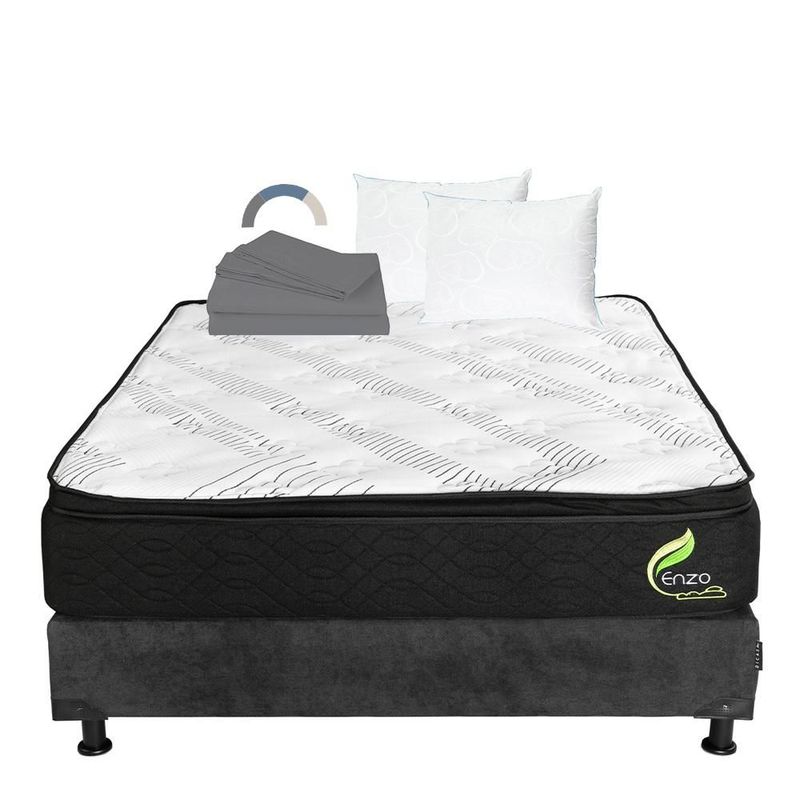 Colchón Queen Size Restonic Enzo Gris Carbón+ Box+ Almohada Oso 2+ Sabanas Basic RGH