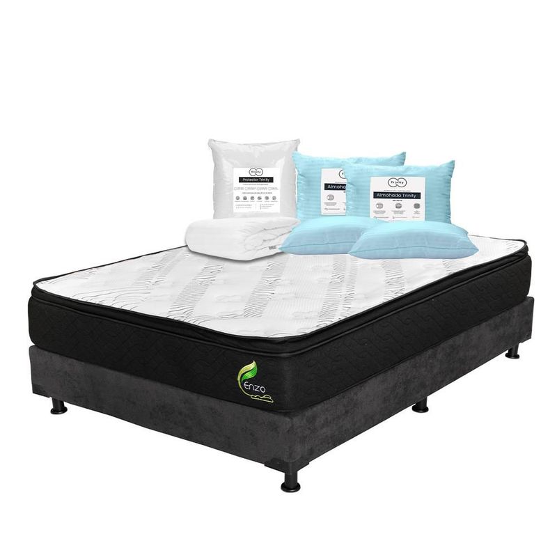 Colchón Queen Size Restonic Enzo Negro+ Box+ Almohada Trinity 2+ Protector Trinity TRY