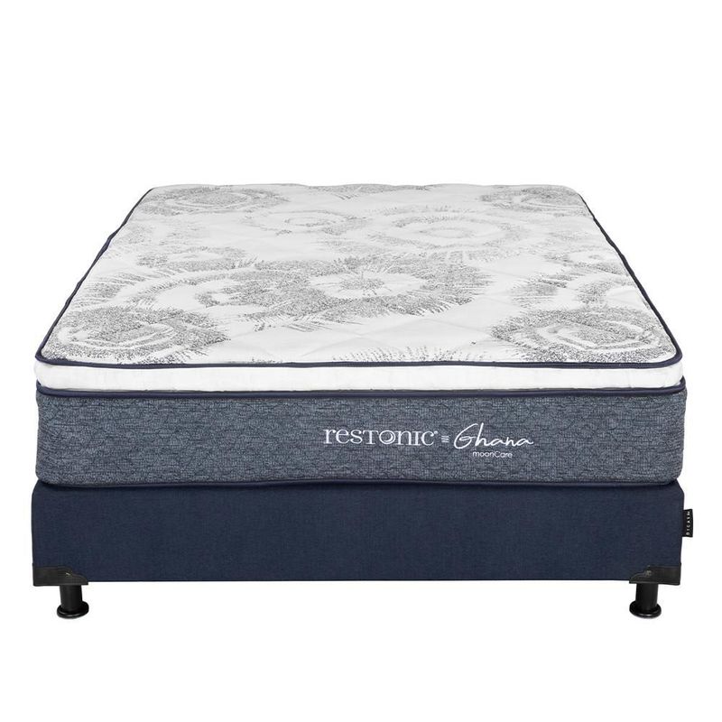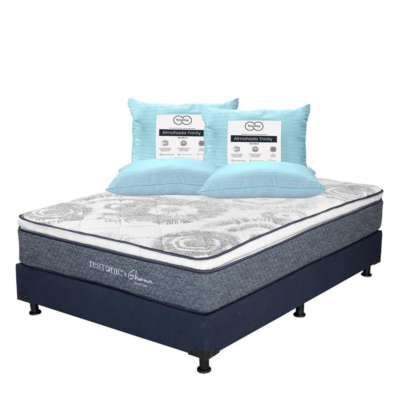 Colchón Queen Size Restonic Ghana Azul+ Box+ Almohada Trinity 2 TRY