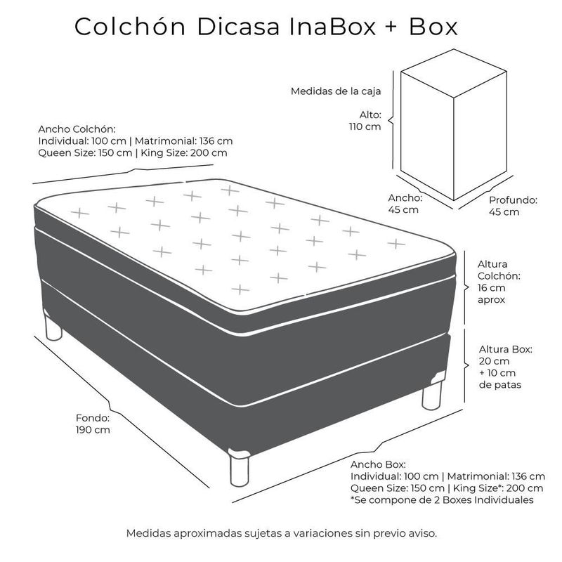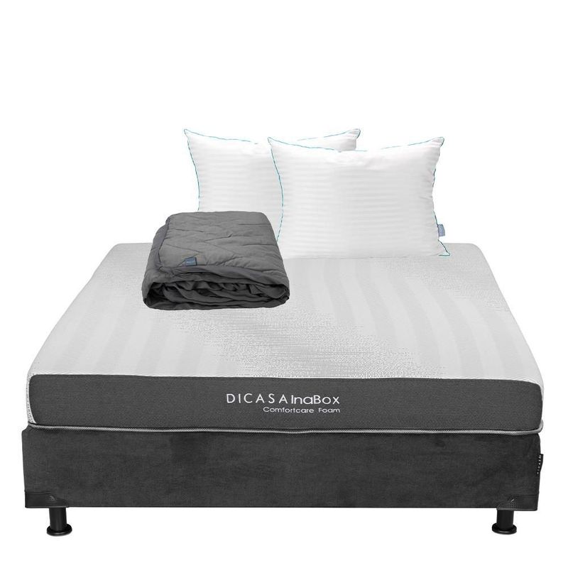 Colchón Queen Size Restonic InaBox Gris Carbón+ Box+ Almohada Royal Twin+ Protector Lux RGH