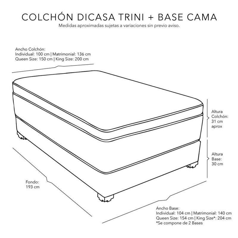 Colchón Queen Size Restonic Trini+ Base Cama Gris Carbón CDZ