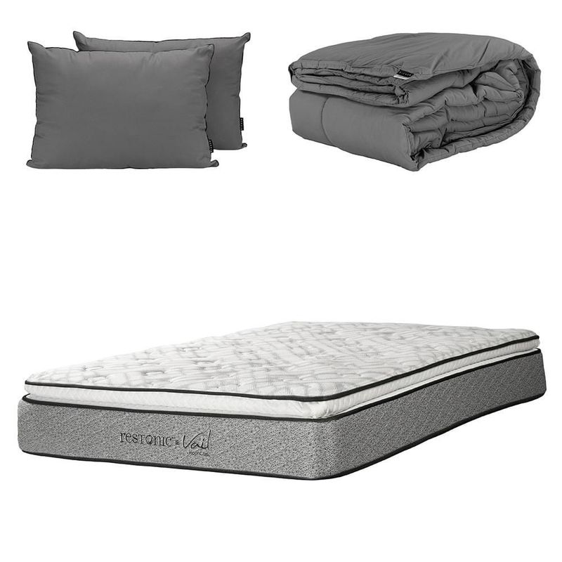 Colchones y BoxesColchonesQueen SizeColchón Queen Size Restonic Vail + Almohadas 2Pack + Edredón Homy CZD