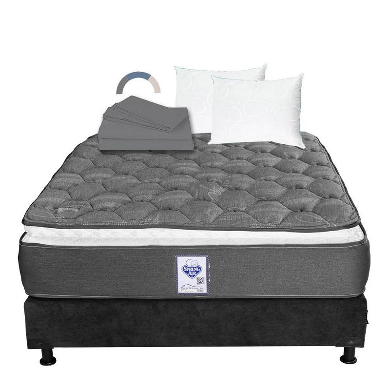 Colchones y BoxesSets de colchonesQueen SizeColchón Queen Size Spring Air Aries + Box Gris Carbón + 2 Almohadas Osos + Juego de Sábanas Basic Grey RGH