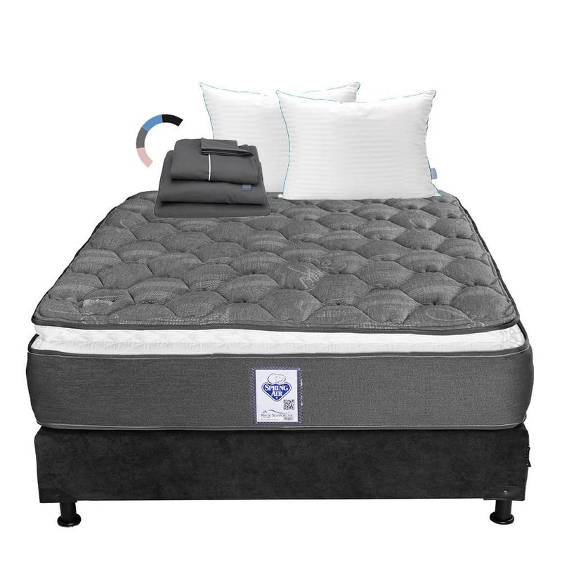 Colchones y BoxesSets de colchonesQueen SizeColchón Queen Size Spring Air Aries + Box Gris Carbón + Almohada Royal Twin + Juego de Sábanas Royal Gris Oxford RGH