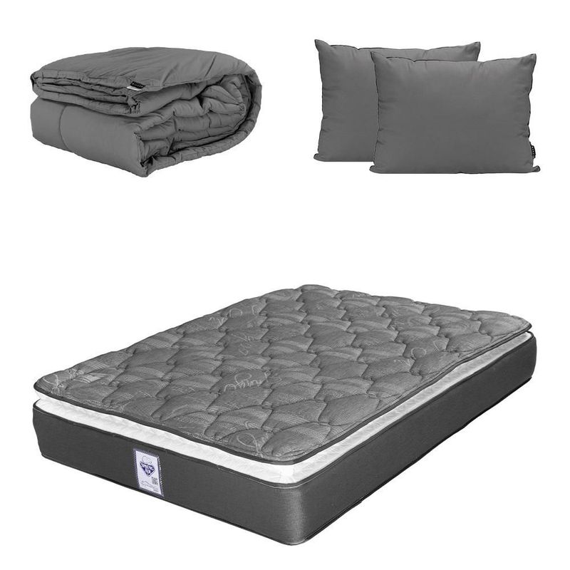 Colchón Queen Size Spring Air Aries Negro+ Almohada 2Pack+ Edredón Homy CDZ