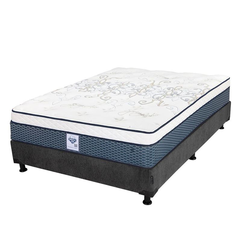Colchon Queen Size Spring Air Cantabria Azul+ Box+ Almohada Oso 2+ Sabanas Basic RGH
