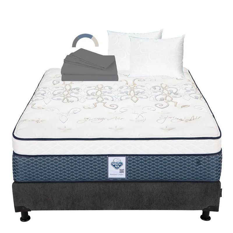 Colchones y BoxesColchonesQueen SizeColchon Queen Size Spring Air Cantabria Azul+ Box+ Almohada Oso 2+ Sabanas Basic RGH