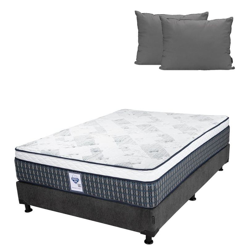 Colchón Queen Size Spring Air Cardona Gris Carbón+ Box+ Almohada 2Pack CDZ