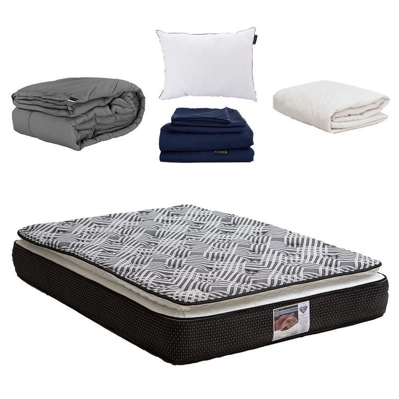 Colchón Queen Size Spring Air Omega + Almohada One + Protector Ultra + Sábanas Softy + Edredón Homy CZD