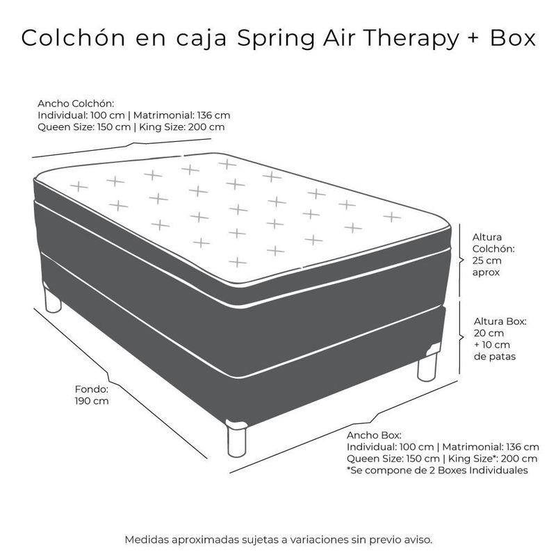 Colchon Queen Size Spring Air Therapy+ Box+ Almohada Royal Twin+ Protector Lux RGH