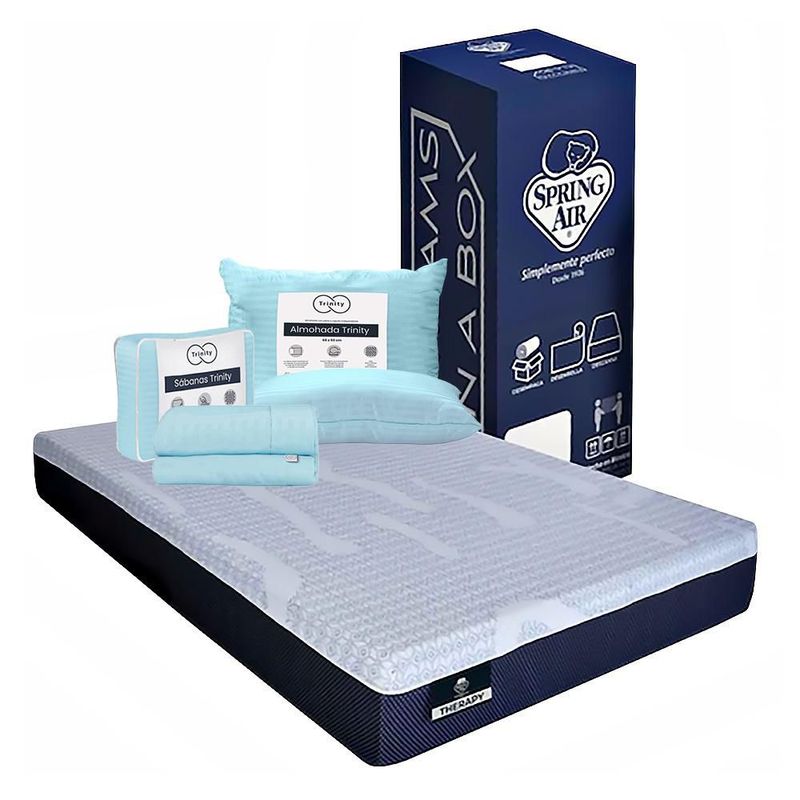 Colchón Queen Size Therapy Azul+ Almohada+ Sabanas TRY