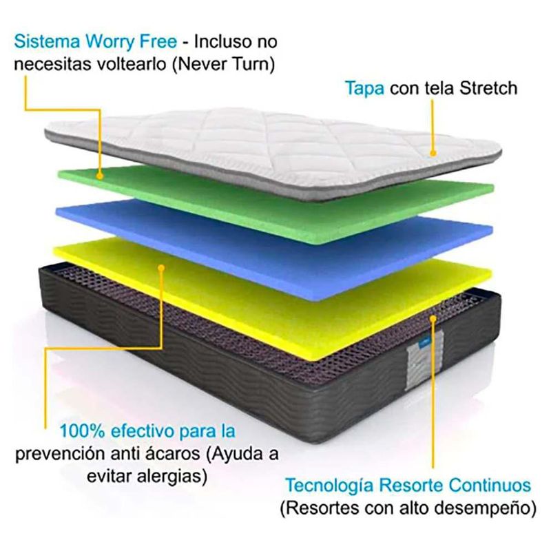 Colchón Restonic Ortopédico Matrimonial Antiestrés + Box + 2 Almohadas