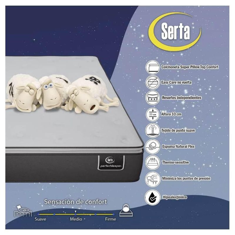 Colchón Serta Matrimonial Colchoneta Confort Foam Natural con Box