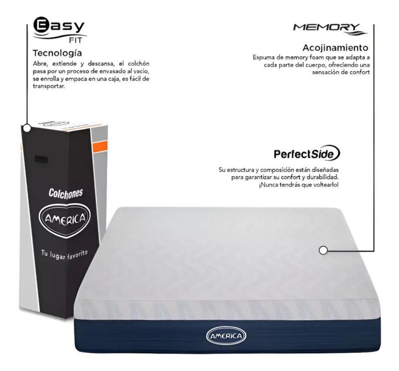 Colchones y BoxesColchones en CajaIndividualColchones America Colchón Individual en Caja Memory ICE Hipoalergénico Soporte Ortopédico Memory Foam