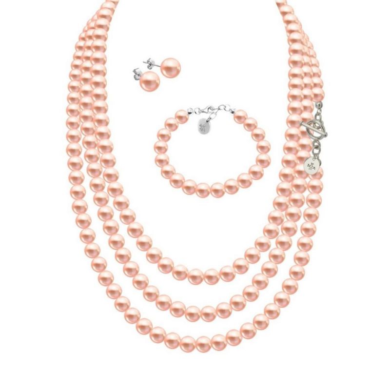 Moda y accesoriosJoyeríaSetsCollar aretes y pulsera Perlas de cristal Beige plata .925 Zvezda