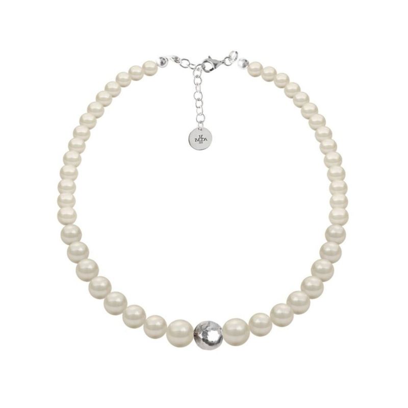 Collar aretes y pulsera Perlas de cristal Crema plata .925 Zvezda
