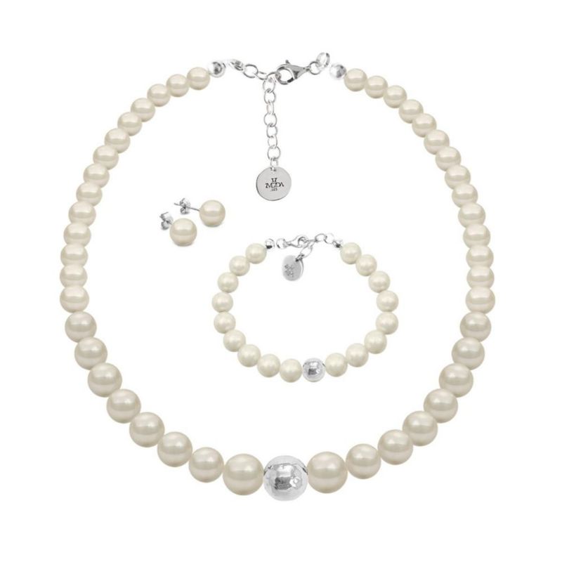 Moda y accesoriosJoyeríaSetsCollar aretes y pulsera Perlas de cristal Crema plata .925 Zvezda