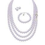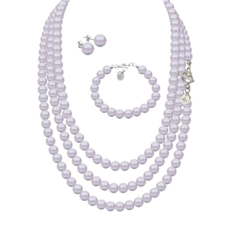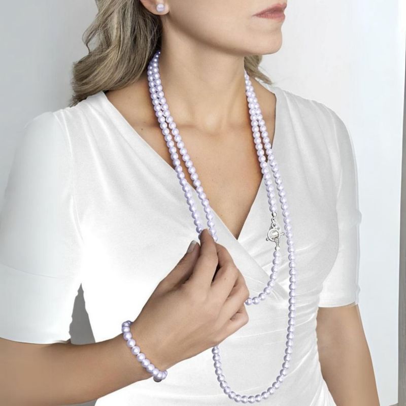 Collar aretes y pulsera Perlas de cristal Lila plata .925 Zvezda