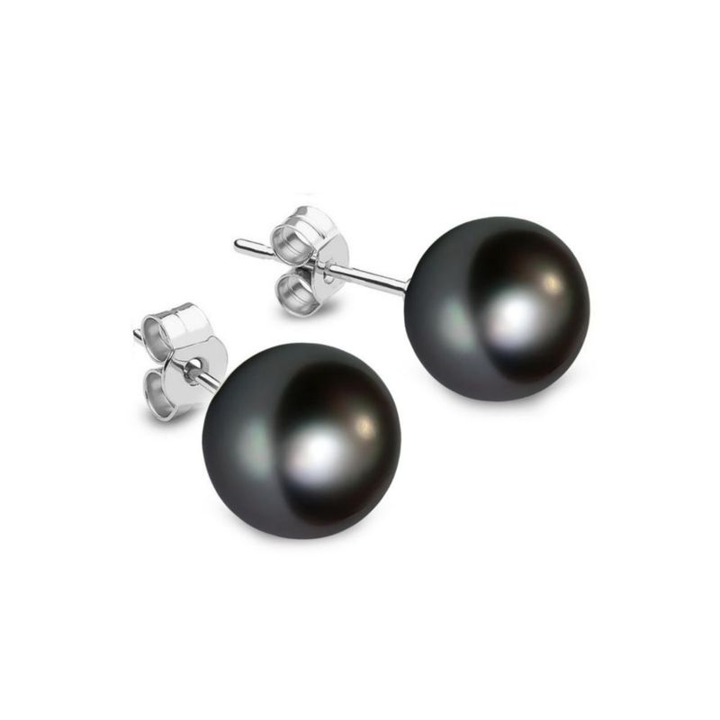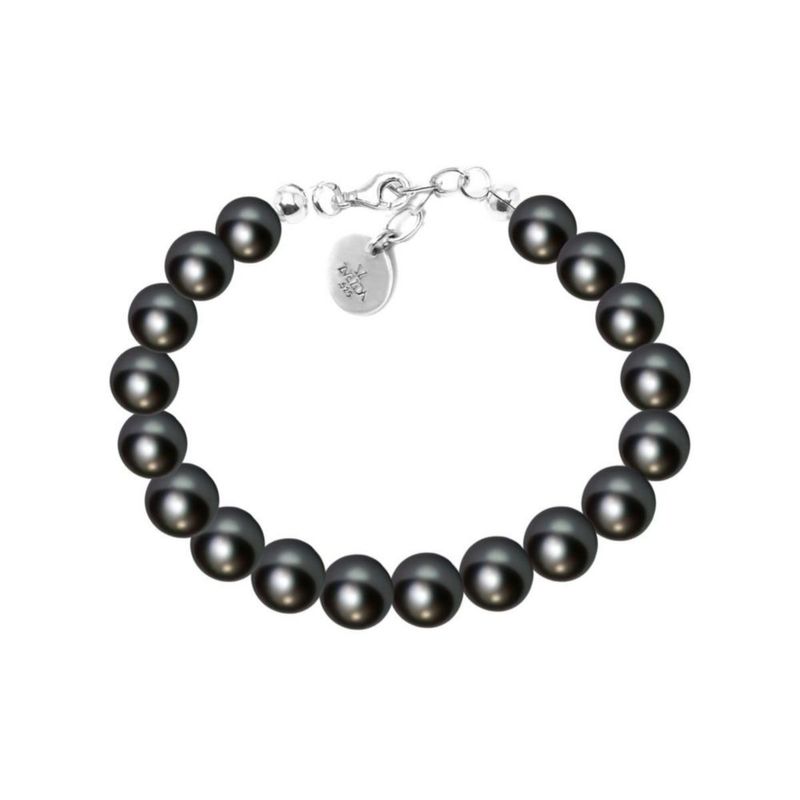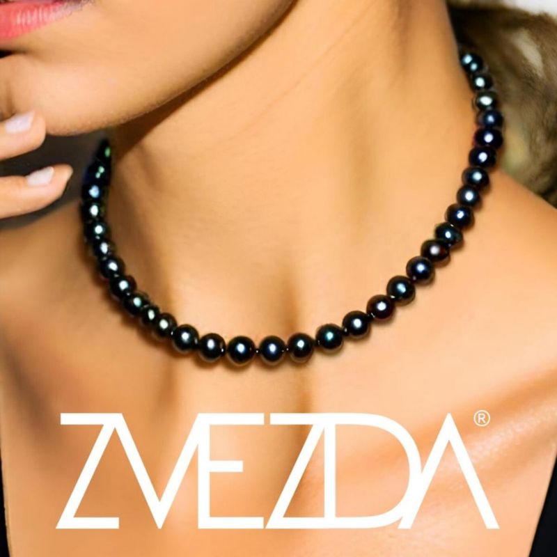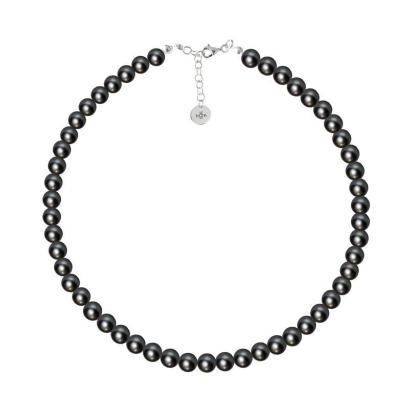 Collar aretes y pulsera Perlas de cristal Negro plata .925 Zvezda