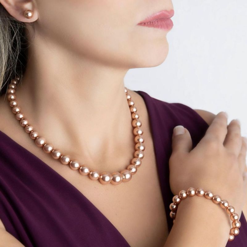 Collar aretes y pulsera Perlas de cristal Oro Rosa plata .925 Zvezda