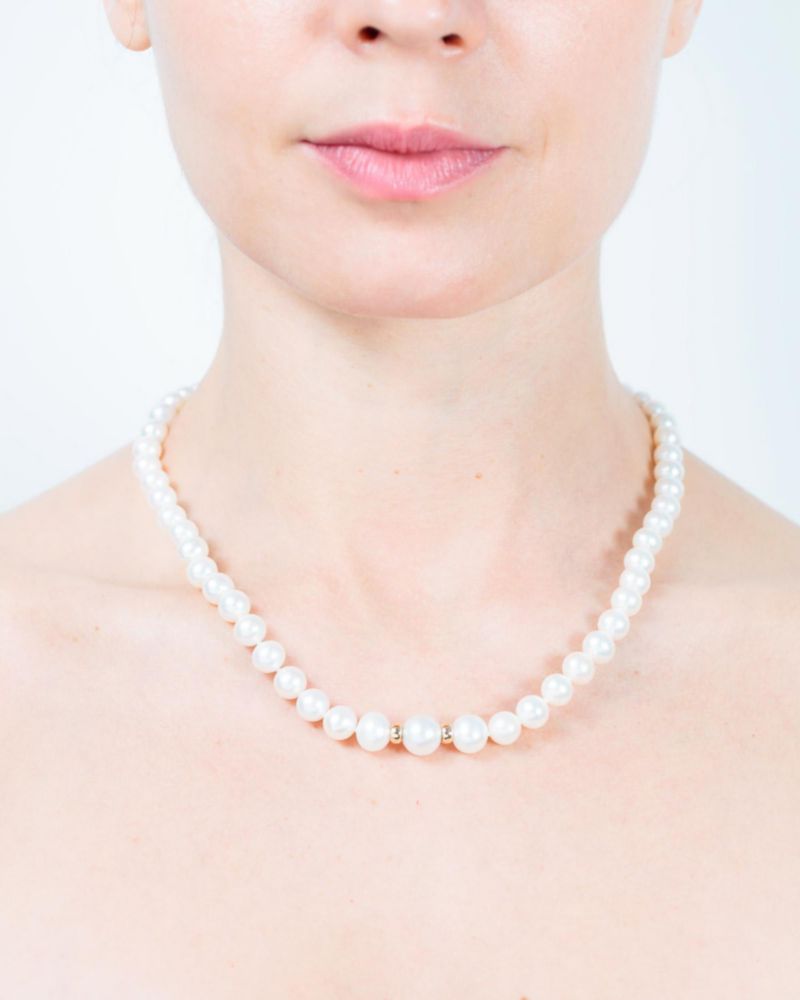 COLLAR DE ORO AMARILLO 14K CON PERLAS BLANCAS