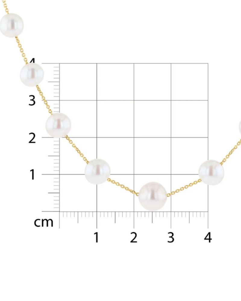 COLLAR DE ORO AMARILLO 14K CON PERLAS BLANCAS DISMINUCIÓN (3-8MM) (40 + 5CM APROX)