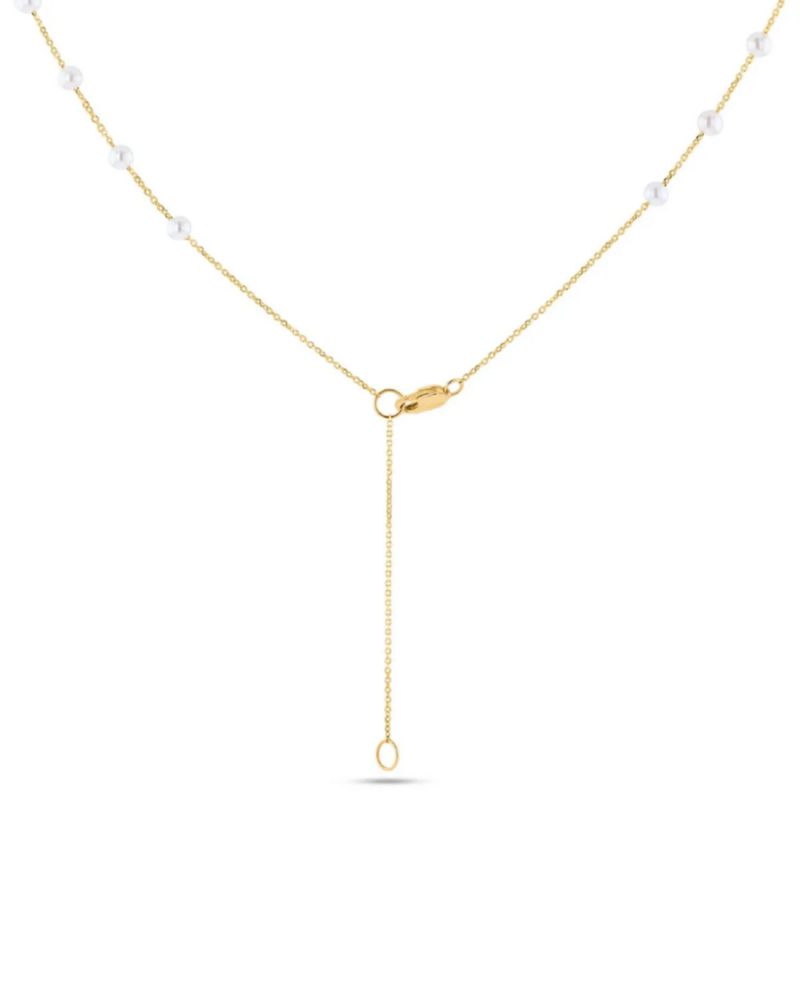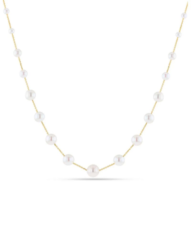 COLLAR DE ORO AMARILLO 14K CON PERLAS BLANCAS DISMINUCIÓN (3-9MM) (40 + 5CM APROX)