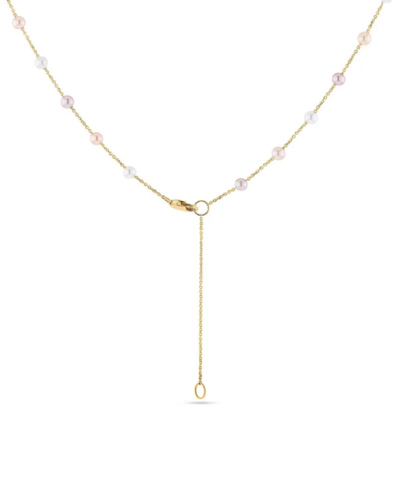 COLLAR DE ORO AMARILLO 14K CON PERLAS MULTICOLOR DISMINUCIÓN (3-9MM) (40 + 5CM APROX)