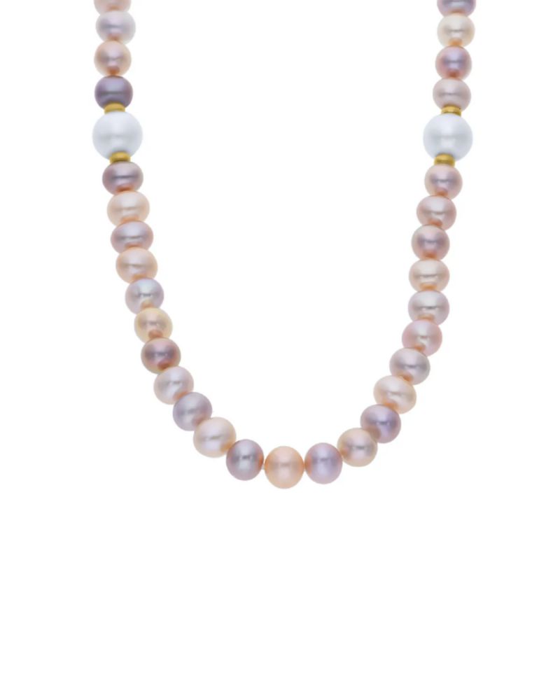 Collar De Oro Amarillo De 14K Con Perla Multicolor