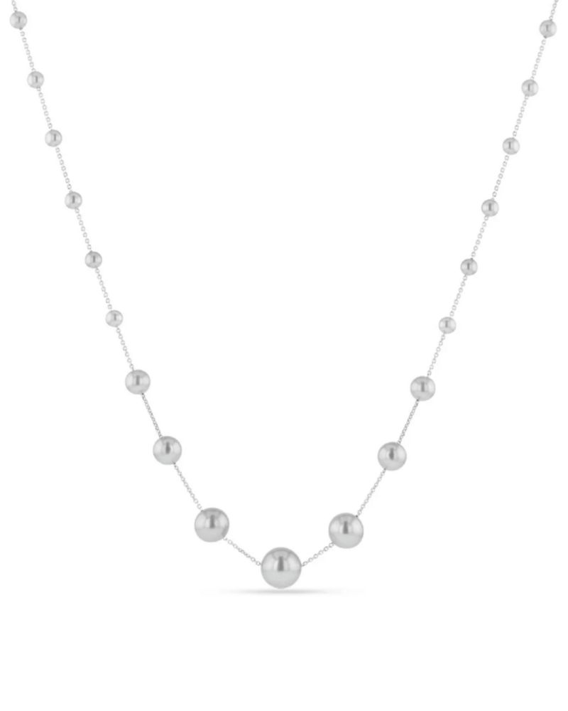 COLLAR DE ORO BLANCO 14K CON PERLAS GRISES DISMINUCIÓN (3-9MM) (40 + 5CM APROX)