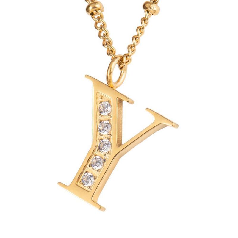 Collar luckyly acero inoxidable con baño de oro 14 k iniciales a - z olga dorado