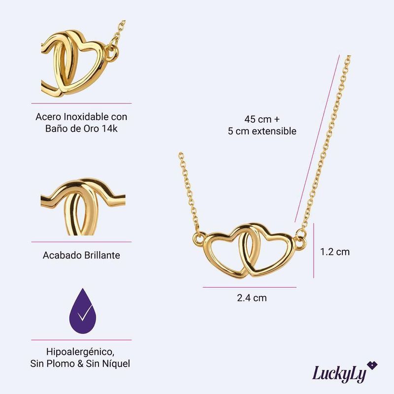 Collar luckyly baño oro 14k o baño oro rosa 14k dije de corazón elsie dorado