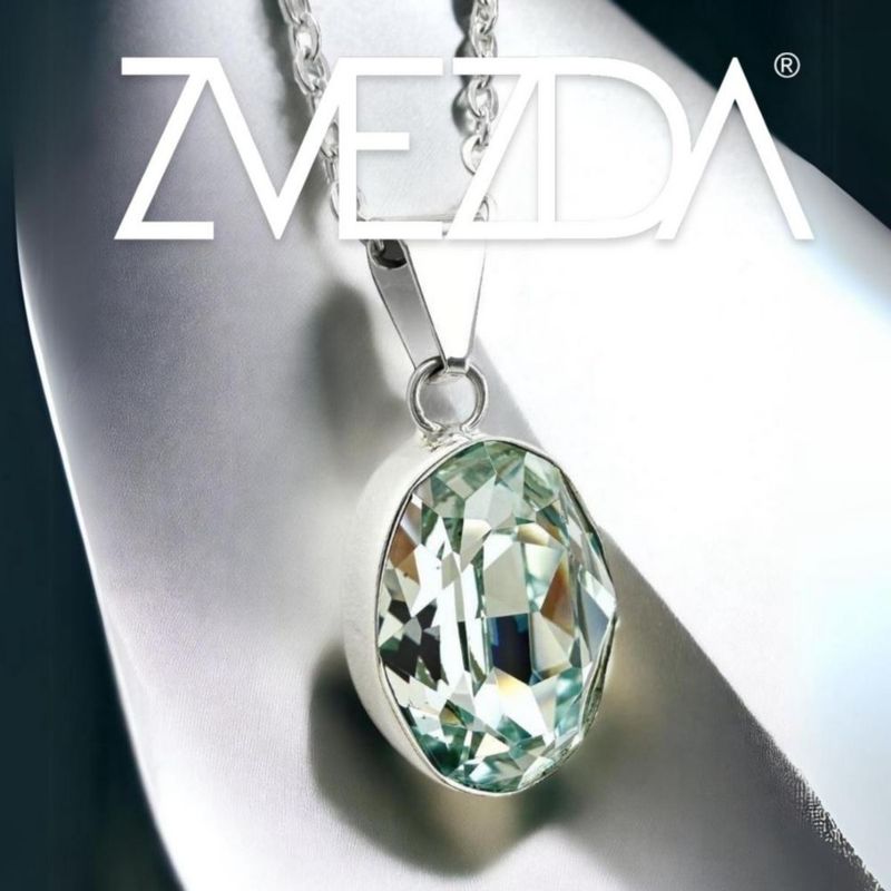 Collar y aretes Oval verde claro con plata .925 Zvezda