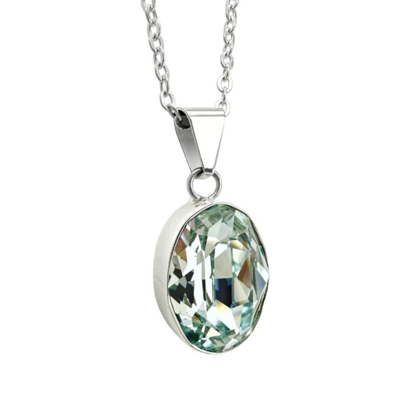 Collar y aretes Oval verde claro con plata .925 Zvezda