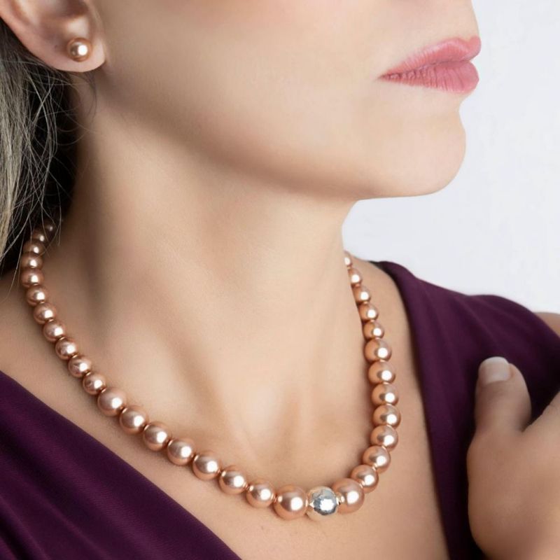 Collar y Aretes Perlas de cristal Oro Rosa esfera plata .925 Zvezda