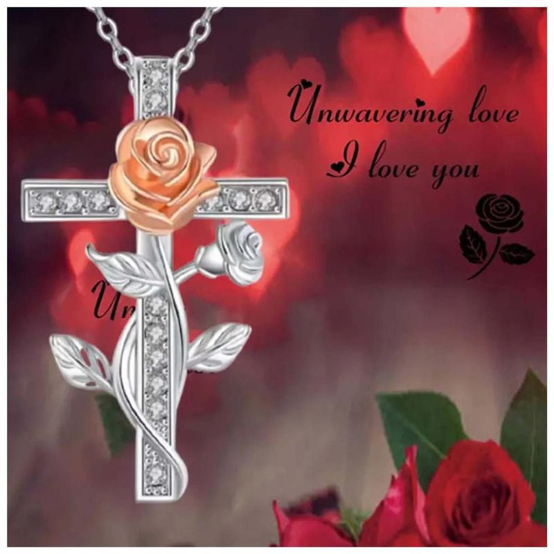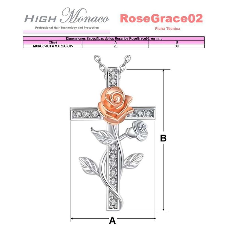 Collares con Dijes de Cruz RoseGrace02 MXRGC-003 Cadena Bonitas de Cruz y Rosa