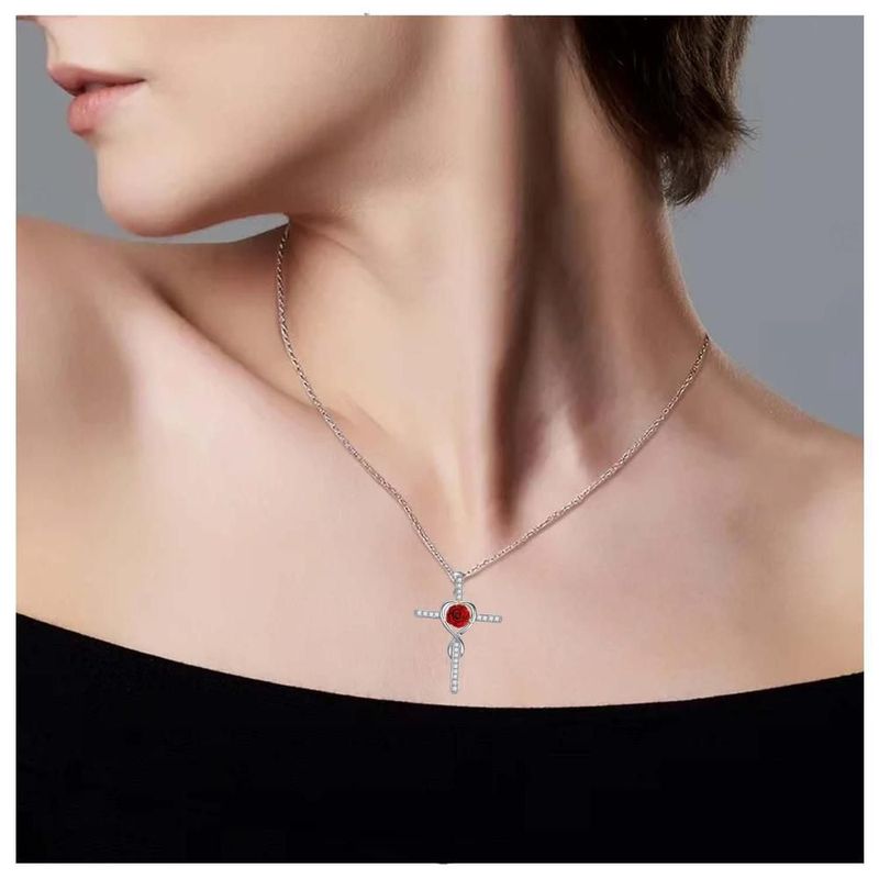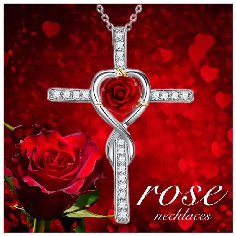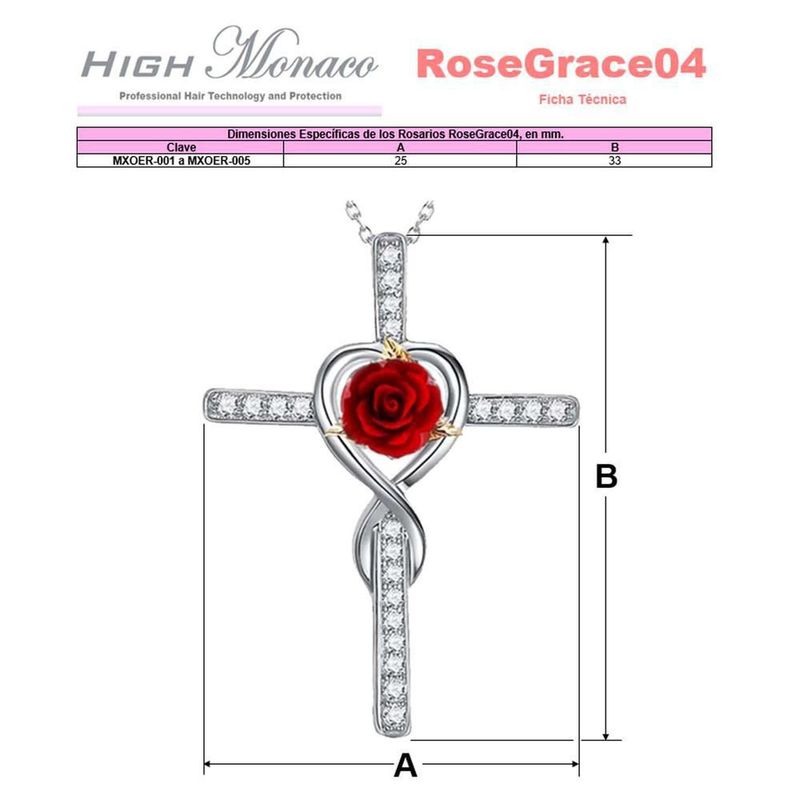 Collares con Dijes de Cruz RoseGrace04 MXOER-003 Cadena Bonitas de Cruz y Rosa