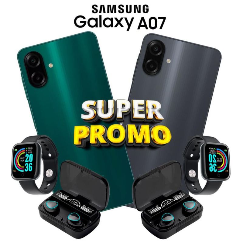 Combo 2 Samsung Galaxy A07 64GB 4GB RAM Verde y Negro con Smartwatch y Audífonos inalámbricos