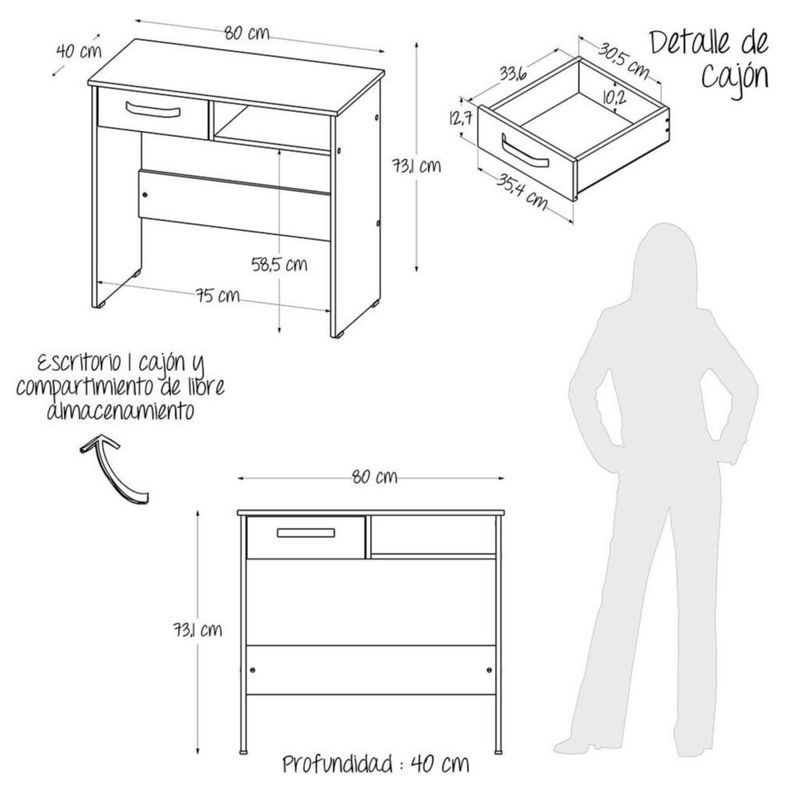 Combo Biblioteca + Escritorio Basic MADERKIT P00179CS-RO