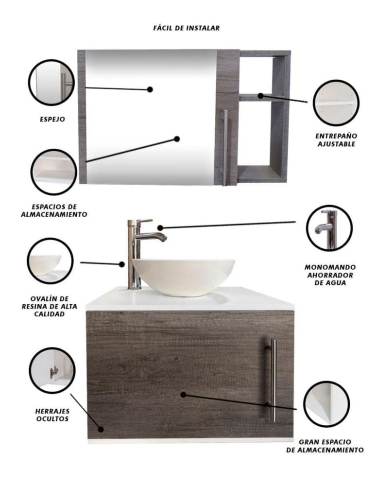 MueblesMuebles de BañoGabinetesCombo de Gabinete para Baño + Botiquin con Espejo