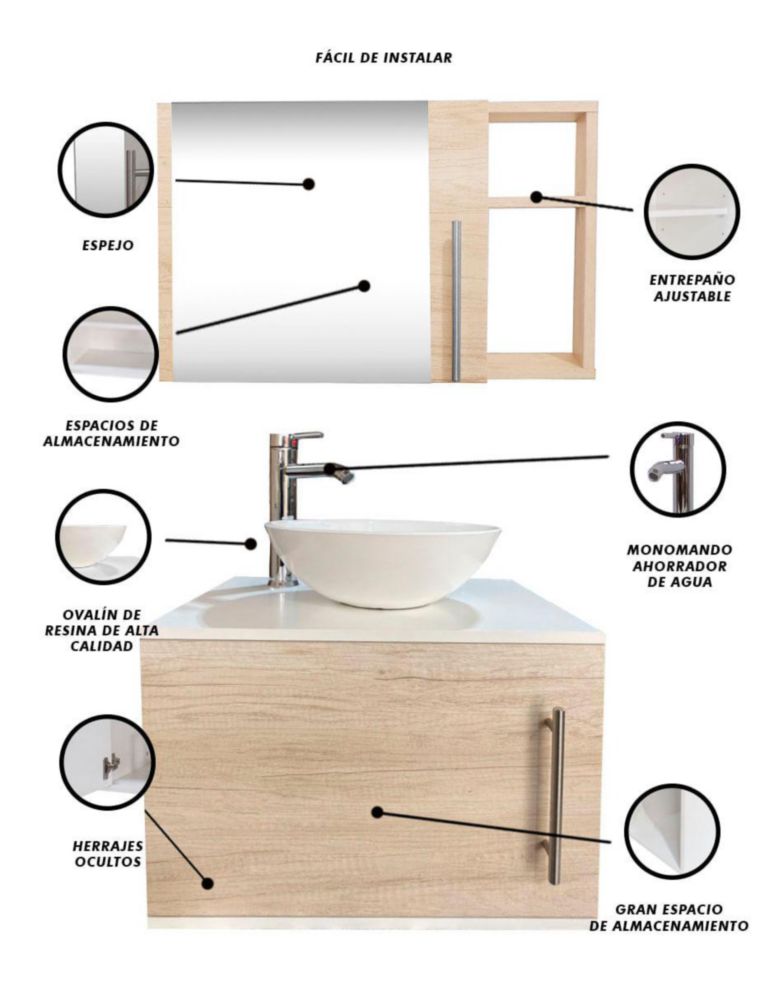 MueblesMuebles de BañoGabinetesCombo de Gabinete para Baño + Botiquin con Espejo